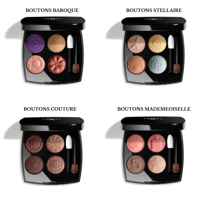 Chanel представила предварительный обзор своей новой лимитированной палитры Les 4 Ombres Boutons, которая поступит в продажу 19 августа. Долгожданная коллекция теней для век включает в себя четыре уникальные палетки, вдохновленные пуговицами стильных моделей модного дома CHANEL.