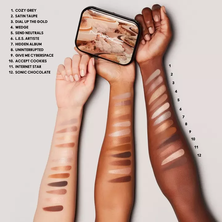 MAC Connect In Color Eye Shadow Palette Hi-Fi Color - это палетка теней для век из 12 оттенков с пигментом, упакованным в один цвет, для безграничных художественных образов