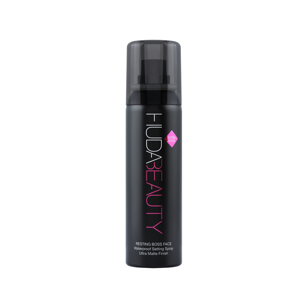 Huda Beauty Resting Boss Face Setting Spray является завершающим шагом в вашем макияже. Он слегка матирует лицо и позволяет косметике продержаться дольше.