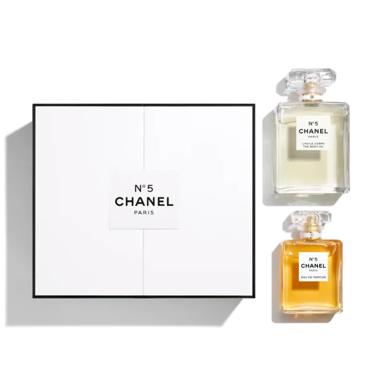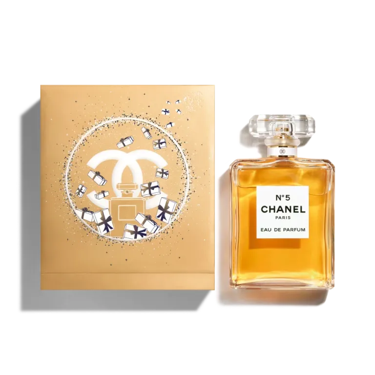 Знаковый аромат N°5, помещенный в бело-золотую коробку, созданную специально для праздничного сезона. В 1921 г. Габриэль Шанель попросила парфюмера Эрнеста Бо создать "женские духи с женским запахом". Он представил ей концептуальную композицию с беспрецедентным использованием альдегидов. Мадемуазель выбрала пятый образец и решила назвать его просто N°5. Она выбрала флакон с революционным дизайном, украшенный белой этикеткой и увенчанный граненым кабошоном. В 1986 году парфюмер CHANEL Жак Польж переосмыслил работу своего предшественника и создал более полную версию N°5 - Eau de Parfum.
