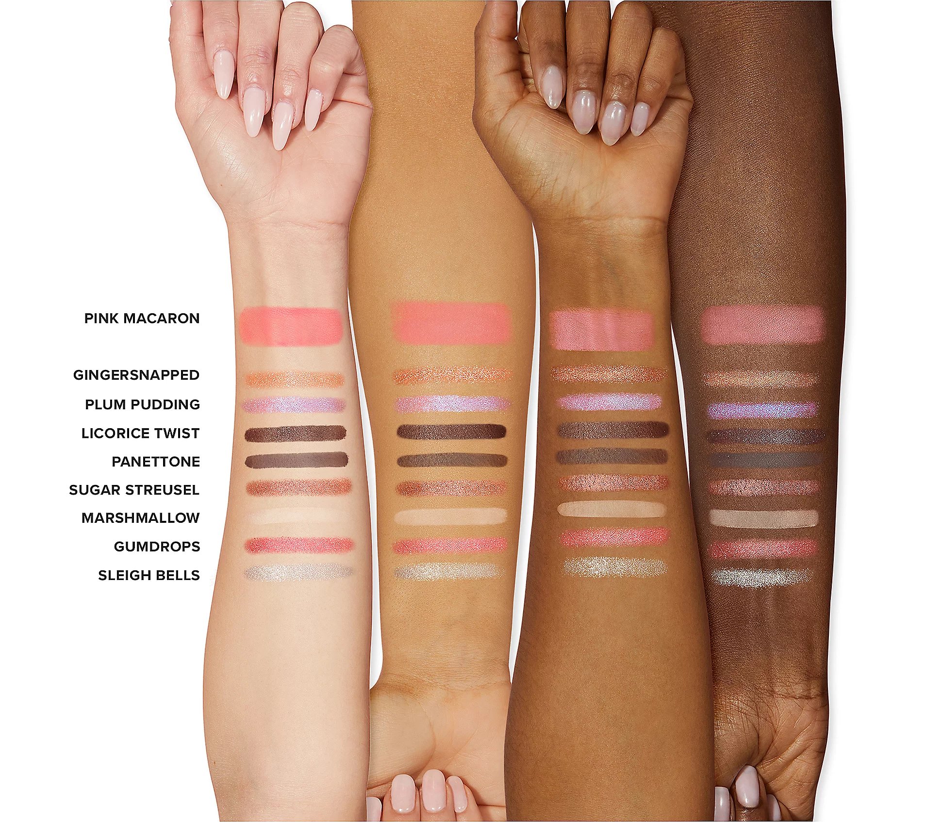 - Палетка для лица и глаз Taste of Christmas с оттенками Sleigh Bells, Gumdrop, Marshmallow, Sugar Streusel, Panettone, Licorice Twist, Plum Pudding, Gingersnapped и Pink Macaron