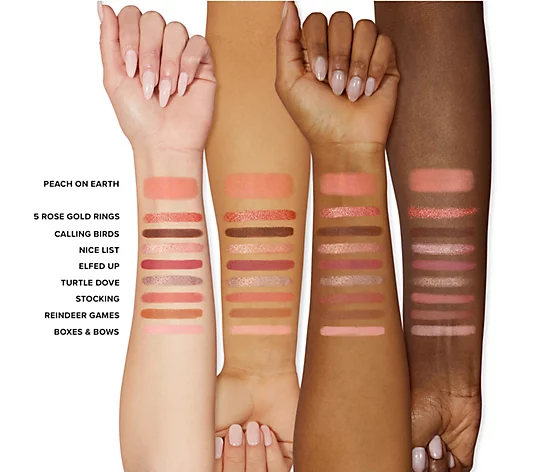 - Палетка для лица и глаз Peacock с оттенками Boxes and Bows, Reindeer Games, Stocking, Turtle Dove, Elfed Up, Nice List, Calling Birds, 5 Gold Rings и Peach on Earth shades