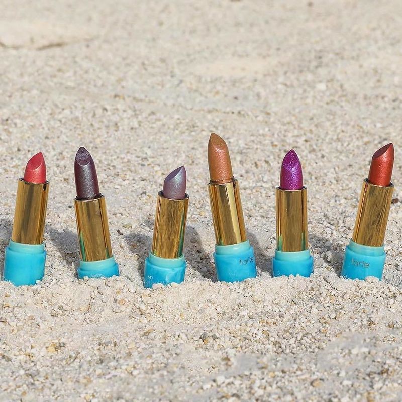 Затрудняемся советовать, стоит ли наносить помаду перед выходом на пляж, но для оетних прогулок – хороший вариант.