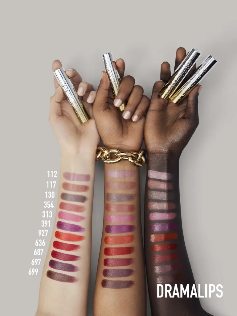 Paco Rabanne выпустил предварительный тизер новой коллекции помад Dramalips. Новая коллекция включает в себя два разных финиша: Dramalips Glassy, включающий 11 оттенков, и Dramalips Glassy Pearl с 3 оттенками.