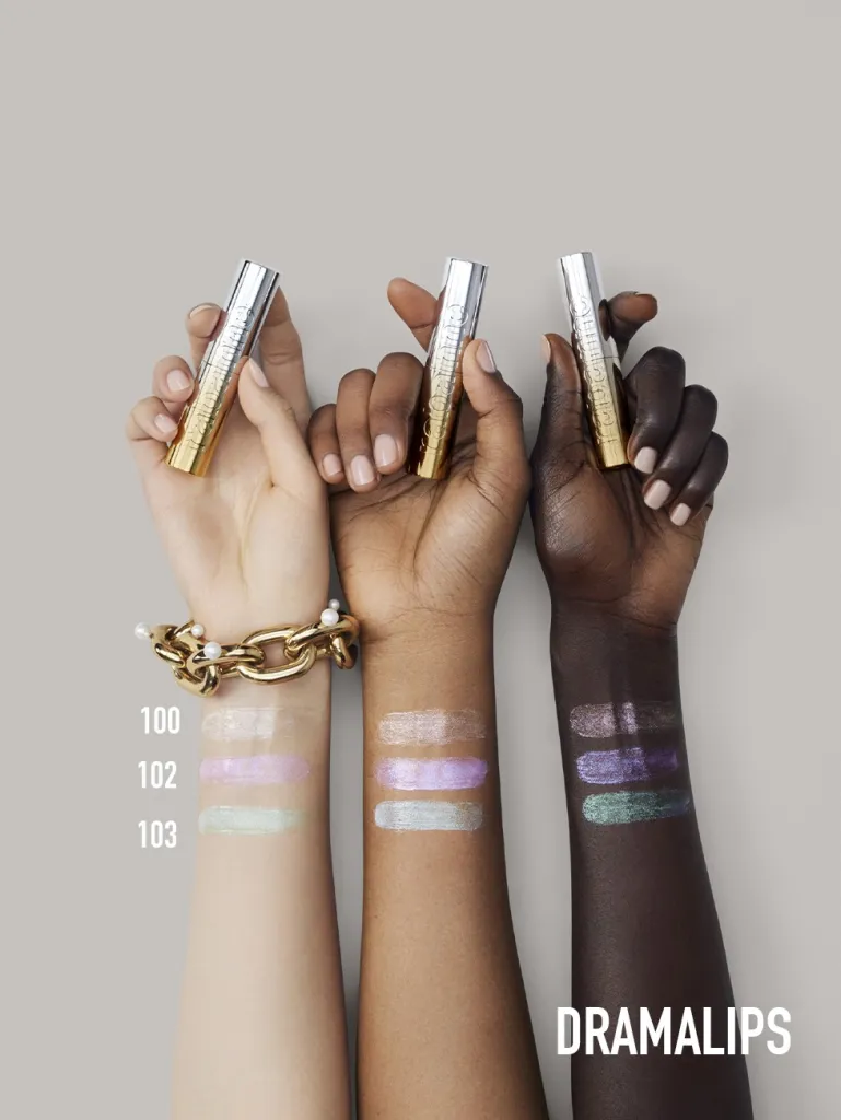 Высокопигментированная помада-блеск, яркий цвет одним нанесением. Преодолейте границы с помощью Dramalips - ультра-блестящей помады с мгновенным блеском 350%.