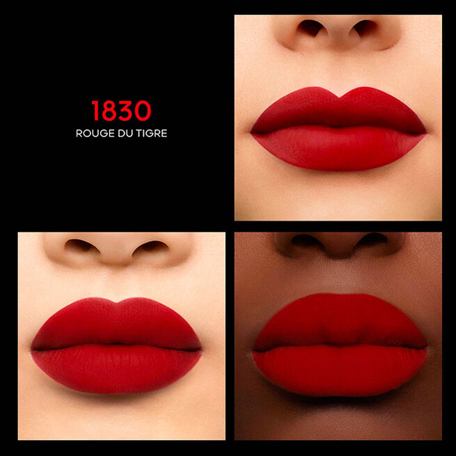 - 1830 Rouge du Tigre– огненный кирпично-красный. Самый первый красный оттенок, созданный Guerlain для губ и щек Bloom of Rose. Оттенок вдохновлен азиатским лаковым искусством и коричнево-красными тонами, которые украшают самые ценные предметы.