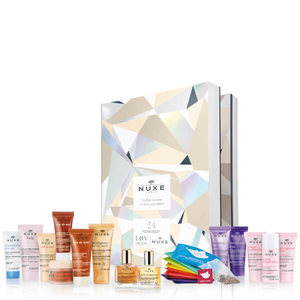 NUXE Beauty Countdown Advent Calendar состоит из кремов для рук и лица, масел, лосьонов, тоников и скрабов. Удобно не только для знакомства, но и путешествий. Отдельный бонус – 10 пакетиков органического чая. Марка постаралась представить все свои средства, поэтому к выбору сложно придраться. Единственное –конечно, хотелось бы увидеть средства, которые чуть больше по объему.