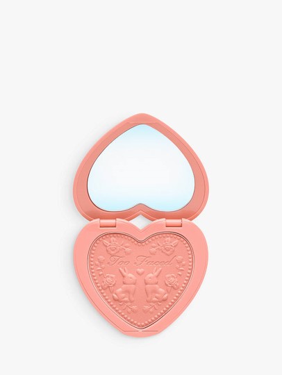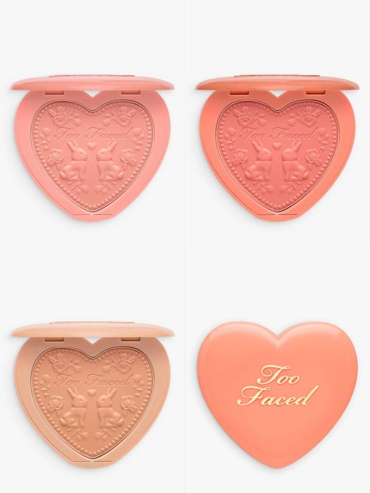 Стойкая и легко смешивающаяся, шелковистая формула с маслом тропического какао увлажняет кожу, придавая ей здоровый, мерцающий цвет, который никогда не скатывается. В истинном стиле Too Faced, эти румяна помещены в их культовый компактный футляр в форме сердца, красиво украшенный новым весенним дизайном в виде зайчика и розы. Каждый из трех оттенков можно использовать отдельно или наслаивать друг на друга, чтобы получить свой собственный индивидуальный цвет: "California Love" представляет собой сумрачный нюдовый оттенок, "No Ordinary Love" - прохладный розовый медовый, а "Love Yourself" - насыщенный дынный цвет.