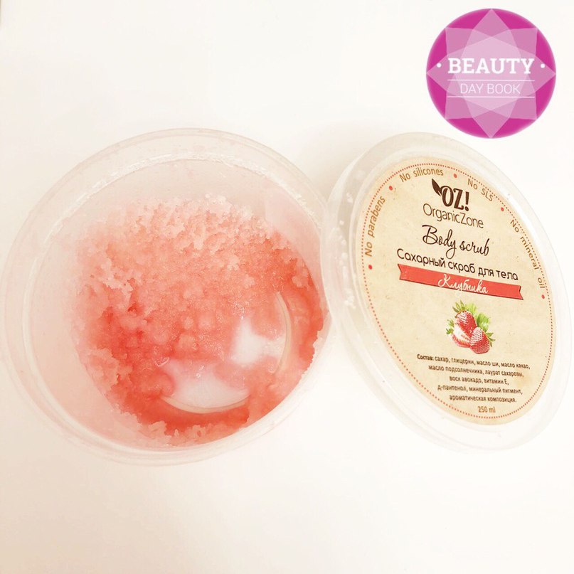 На одной выставке по органической косметике приобрели это средство от бренда Organic Zone, сахарный скраб для тела "Клубника". Цена была около 300р.