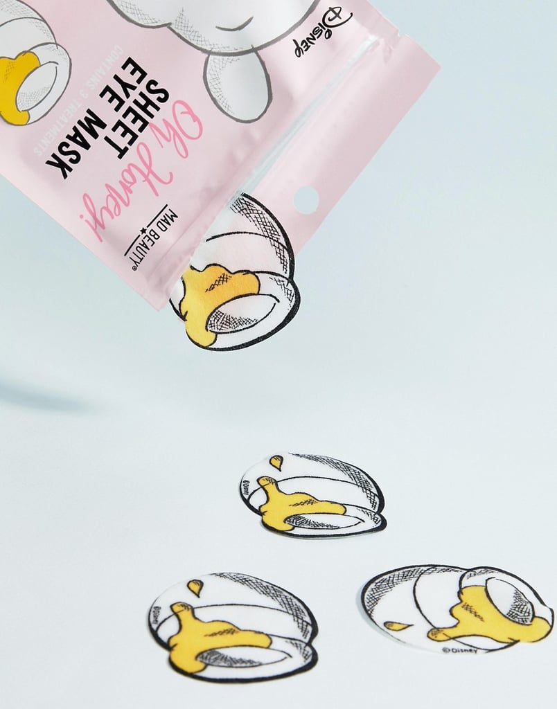 Disney Winnie the Pooh Eye Mask – набор очаровательных патчей для глаз от Mad Beauty. Они выполнены в виде горшочков с медом –любимого лакомства Винни. Маски помогают расслабиться, придают сияние и здоровый вид. Кожа насыщается полезными элементами от кокоса и меда, которые входят в состав.