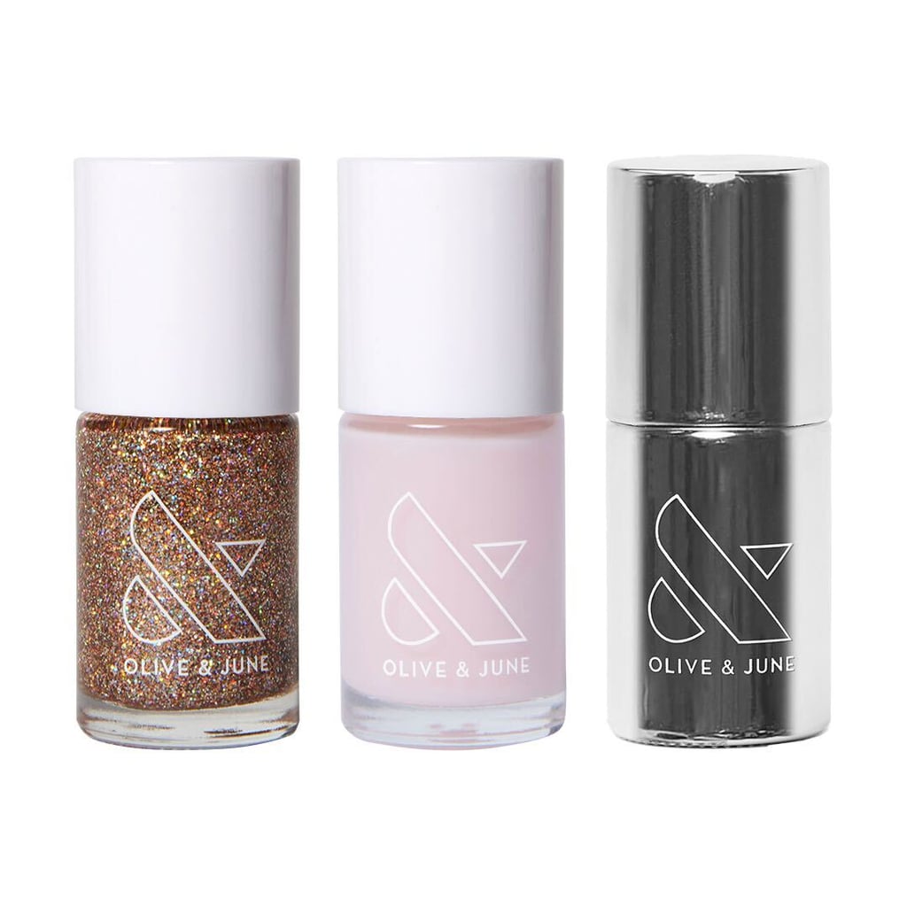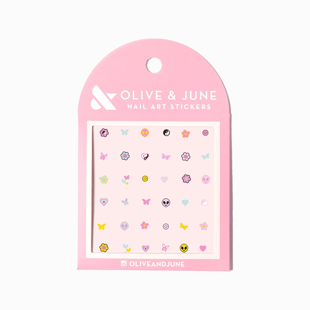 Как раз ко Дню Святого Валентина, Olive & June выпускает лимитированную серию средств для украшения ногтей Groovy Bouquet Mani and Ring Set с Frasier Sterling. В комплект входят два лимитированных оттенка лака для ногтей, один радужный блеск, набор стикеров для ногтей с ностальгическим дизайном, а также золотое цветочное кольцо, которое можно приобрести только в этом комплекте.
