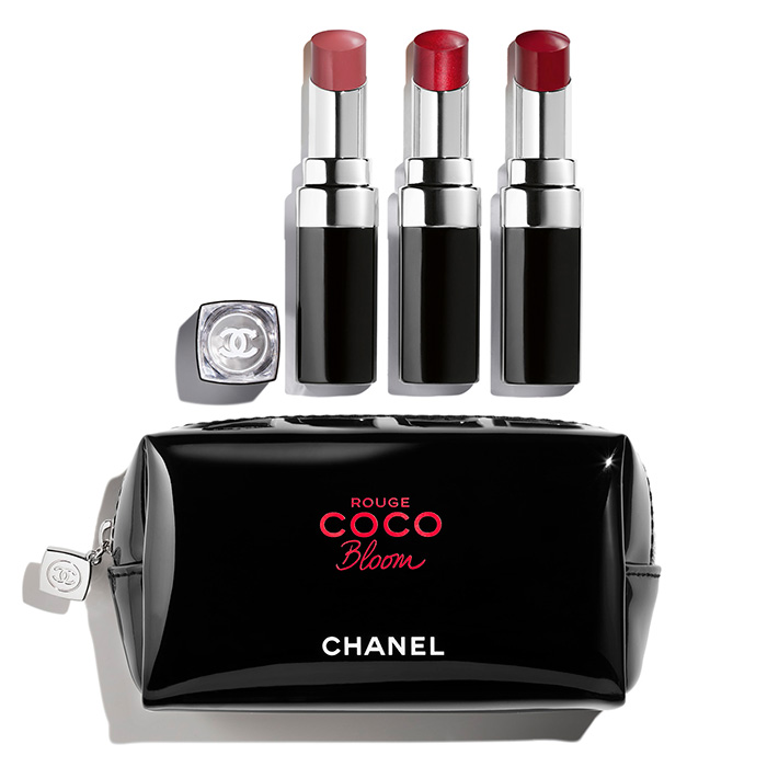 Ограниченная серия из 3-х оттенков Rouge Coco Bloom для губ с эффектным эластичным покрытием. Набор представлен в элегантной косметичке.