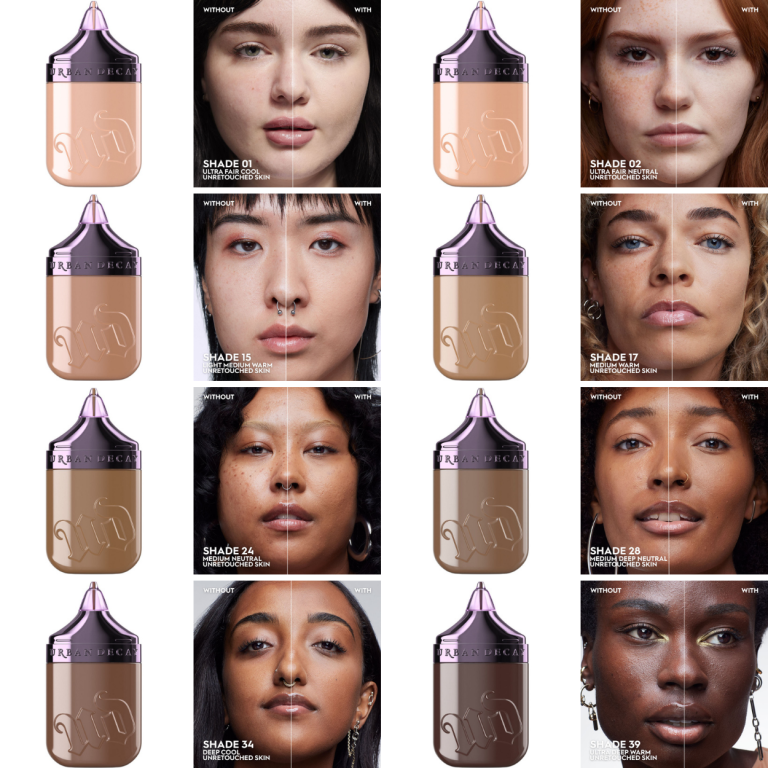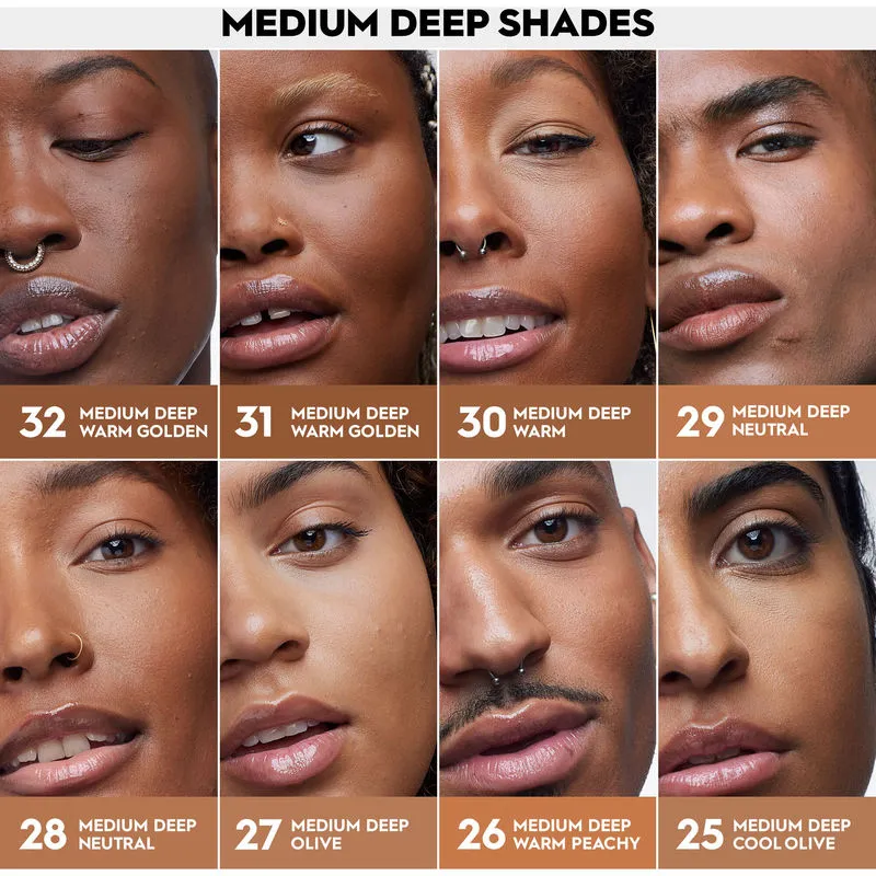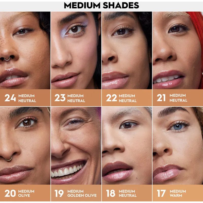 - Тональный крем для лица 3-в-1 в 40 оттенках: жидкий тональный крем, сыворотка и пудра.