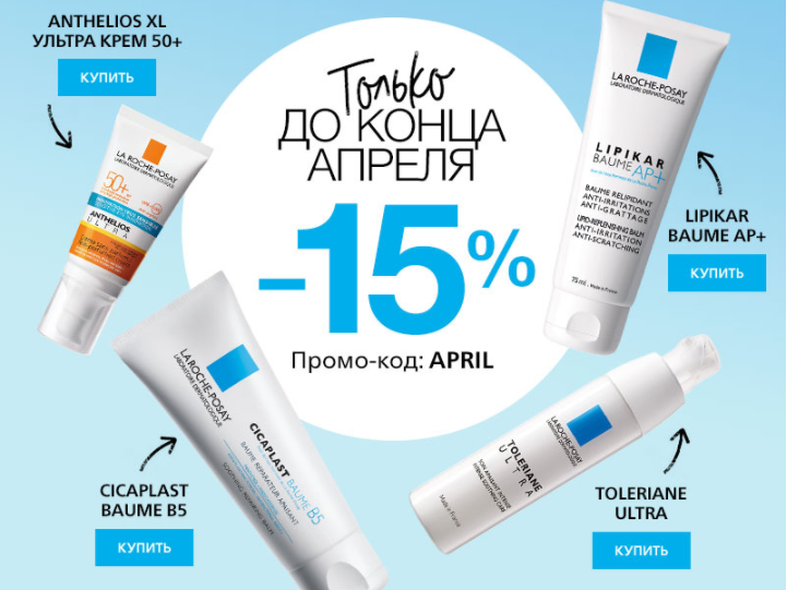 Условия акции: скидка -15% предоставляется на весь ассортимент интернет-магазине La Roche-Posay.Действие акции: с 26.04.2018 по 30.04.2018Промокод: APRILПерейти к покупкам!