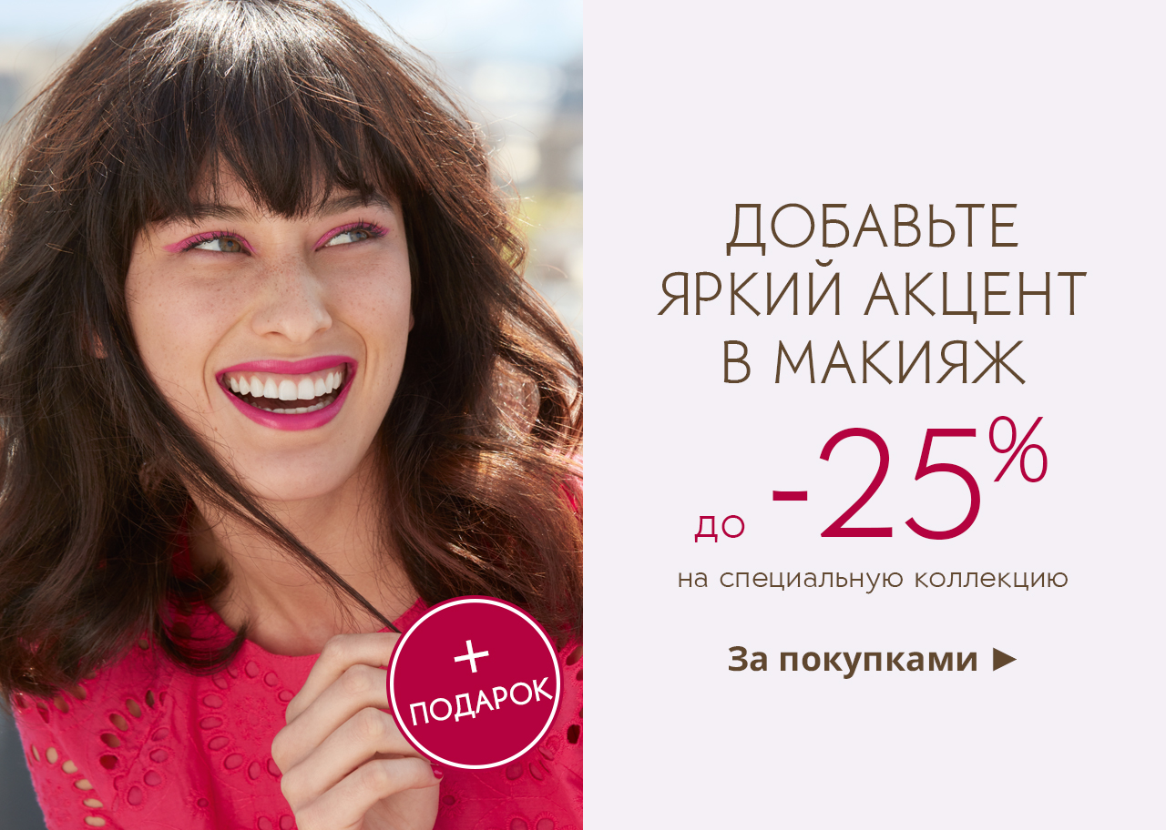 Предложения «Добавить яркий акцент в макияж до -25%» и «Сумка в подарок за любой заказ и косметичка с миниатюрами в подарок за заказ от 1900 руб.» Действительно до 13 мая в интернет-бутике.
