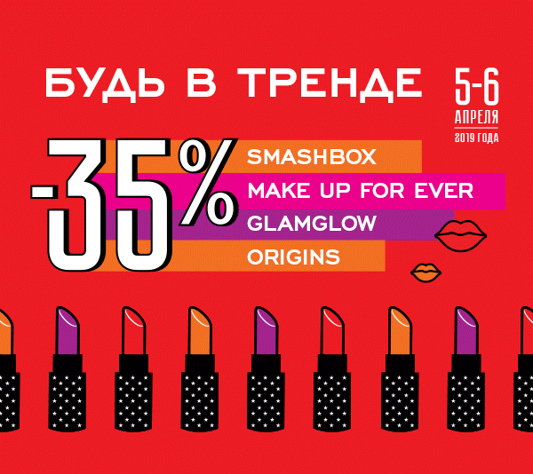 569 0 Условия акции: скидка -35% действует на весь ассортимент Origins, GlamGlow, Make Up For Ever, Smashbox в интернет-магазине Рив Гош.Действие акции: с 05.04.2019 по 06.04.2019Перейти к покупке! 06.04.2019 Автор статьи: Мария Владимирова Поделиться с друзьями