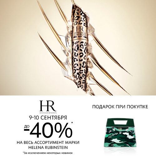 Условия акции: скидка -40% действует на весь ассортимент бренда Helena Rubinstein и подарки при покупке в интернет-магазине Иль де Ботэ.Действие акции: с 09.09.2019 по 10.09.2019Подробнее об акции.