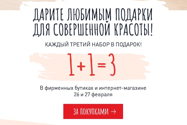 607 0 Условия акции: третий продукт по равной или наименьшей стоимости в корзине вы получаете в подарок в интернет-магазине Erborian.Действие акции: с 26.02.2019 по 27.02.2019Перейти к покупке! 28.02.2019 Автор статьи: Мария Владимирова Поделиться с друзьями