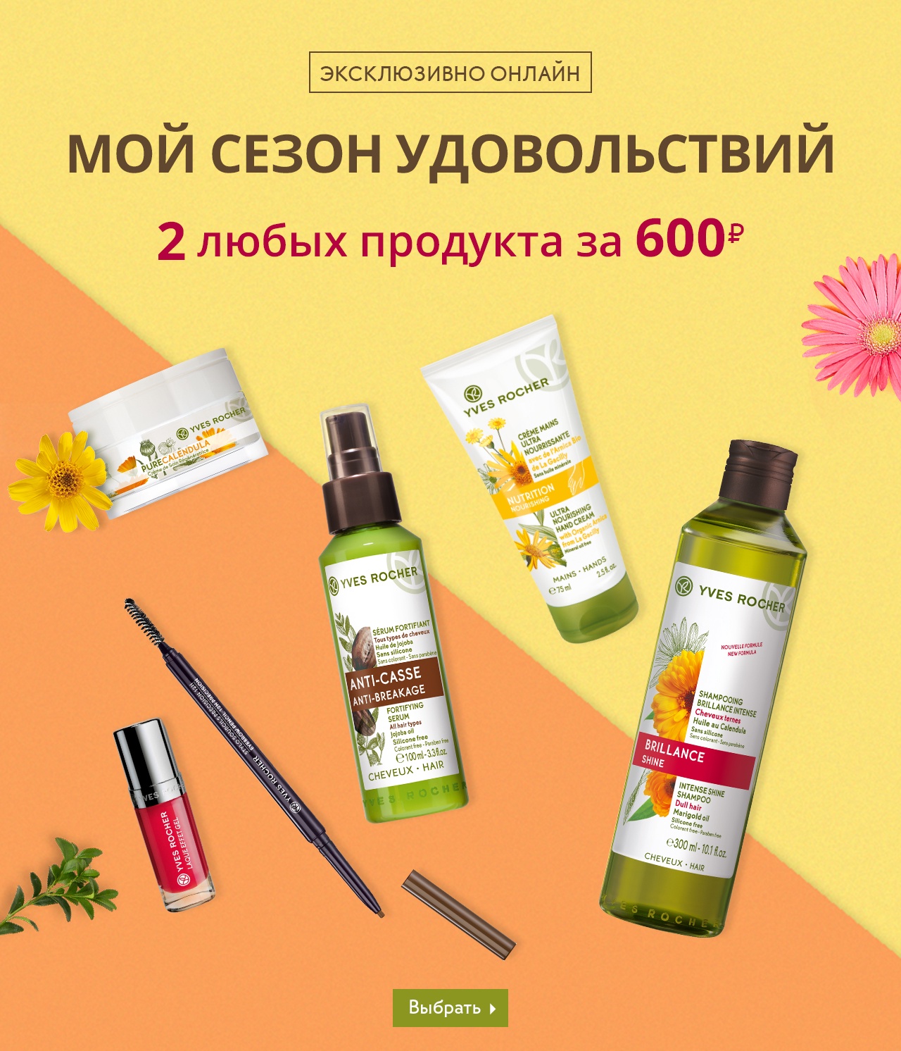 Предложение «2 продукта за 600» действительно до 21 октября 2018 г. в интернет-бутике Yves Rocher!