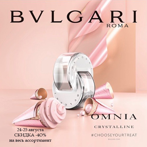 Условия акции: скидка -40% действует на весь ассортимент бренда BVLGARI в интернет-магазине Иль де Ботэ.Действие акции: с 24.08.2019 по 25.08.2019Подробнее об акции.