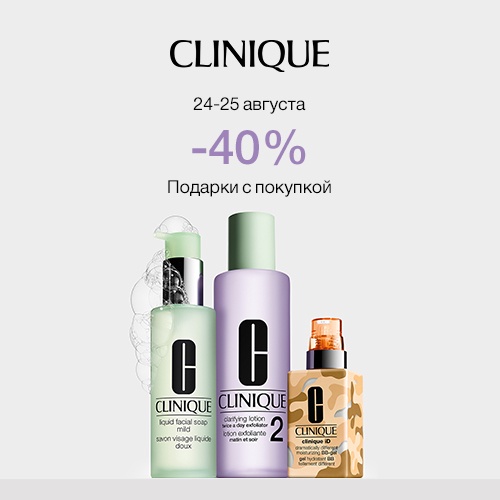 Условия акции: скидки до -40% действуют на весь ассортимент бренда Clinique и подарки при покукпе в интернет-магазине Иль де Ботэ. Действие акции: с 24.08.2020 по 25.08.2020