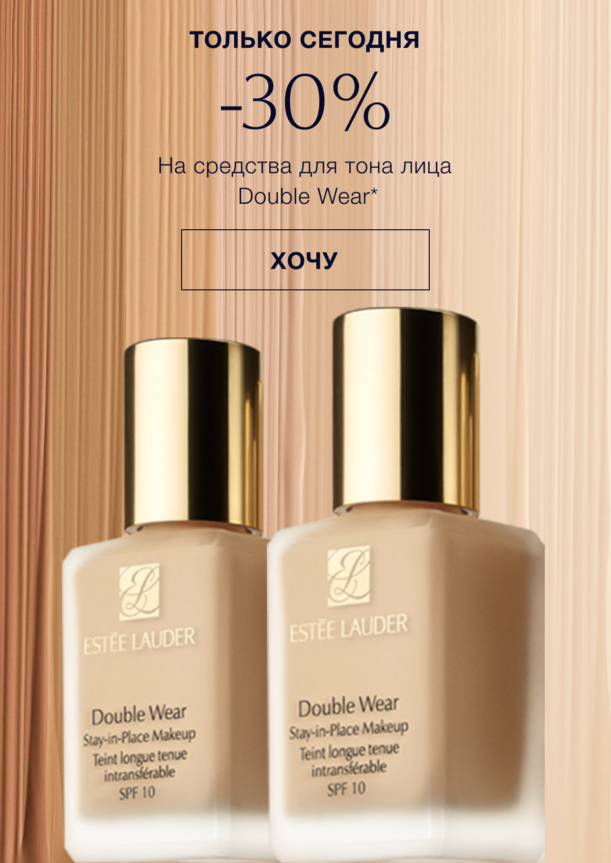 Условия акции: скидка -30% действует на средство для тона лица Double Wear в интернет-магазине Estee Lauder.Промокод: ХОЧУДействие акции: только 04.05.2020 до 23:59 по московскому времени.