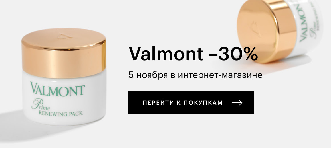Условия акции: скидка -30% действует на весь ассортимент бренда Valmont при покупке в интернет-магазине Золотое Яблоко.Действие акции: только 05.11.2019 до 23:59 по московскому времени.