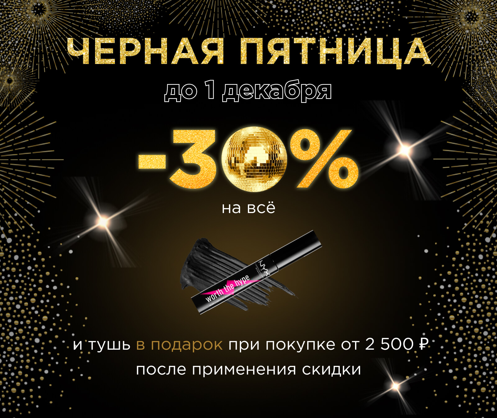 496 0 Условия акции: скидка -30% действует на весь ассортимент и тушь в подарок при покупке на сумму от 2500 ₽ в интернет-магазине NYX.Действие акции: с 25.11.2019 по 01.12.2019Перейти к покупке! 25.11.2019 Автор статьи: Мария Владимирова Поделиться с друзьями