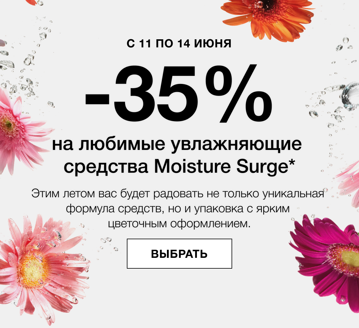 Условия акции: скидка -35% действует на увлажнающие средства Mousture Surge и тушь в подарок при покупке в интернет-магазине Clinique. Действие акции: c 11.06.2020 по 14.06.2020