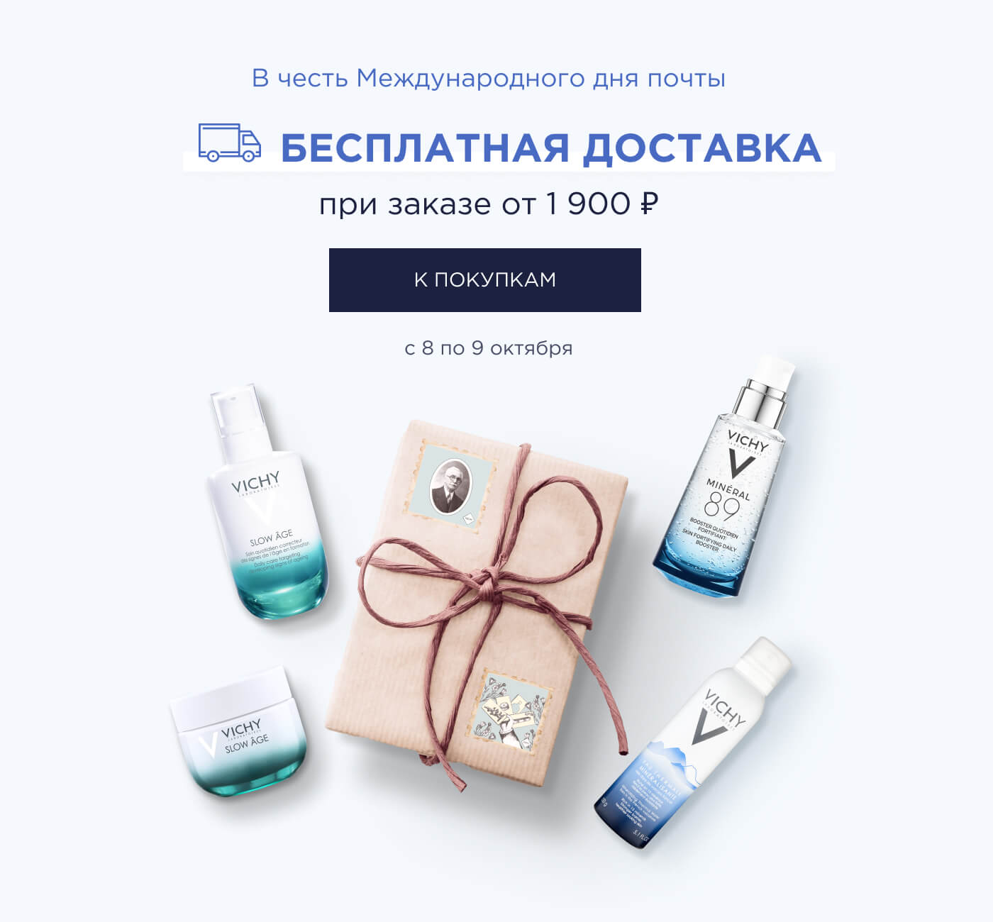 542 0 Условия акции: бесплатная доставка действует при покупке от 1900₽ в интернет-магазине VICHY.Действие акции: с 08.10.2019 по 09.10.2019Перейти к покупке! 10.10.2019 Автор статьи: Мария Владимирова Поделиться с друзьями