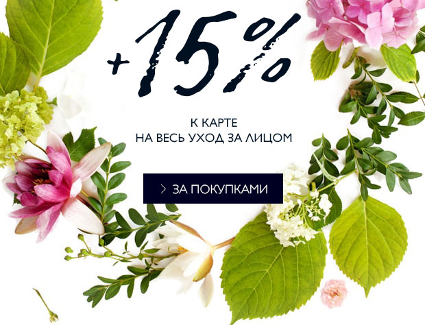 Предложение действительно при покупке в интернет-магазине с 12 по 15 апреля 2018 г. Скидка 15% распространяется на ограниченный ассортимент категории уход за лицом.
