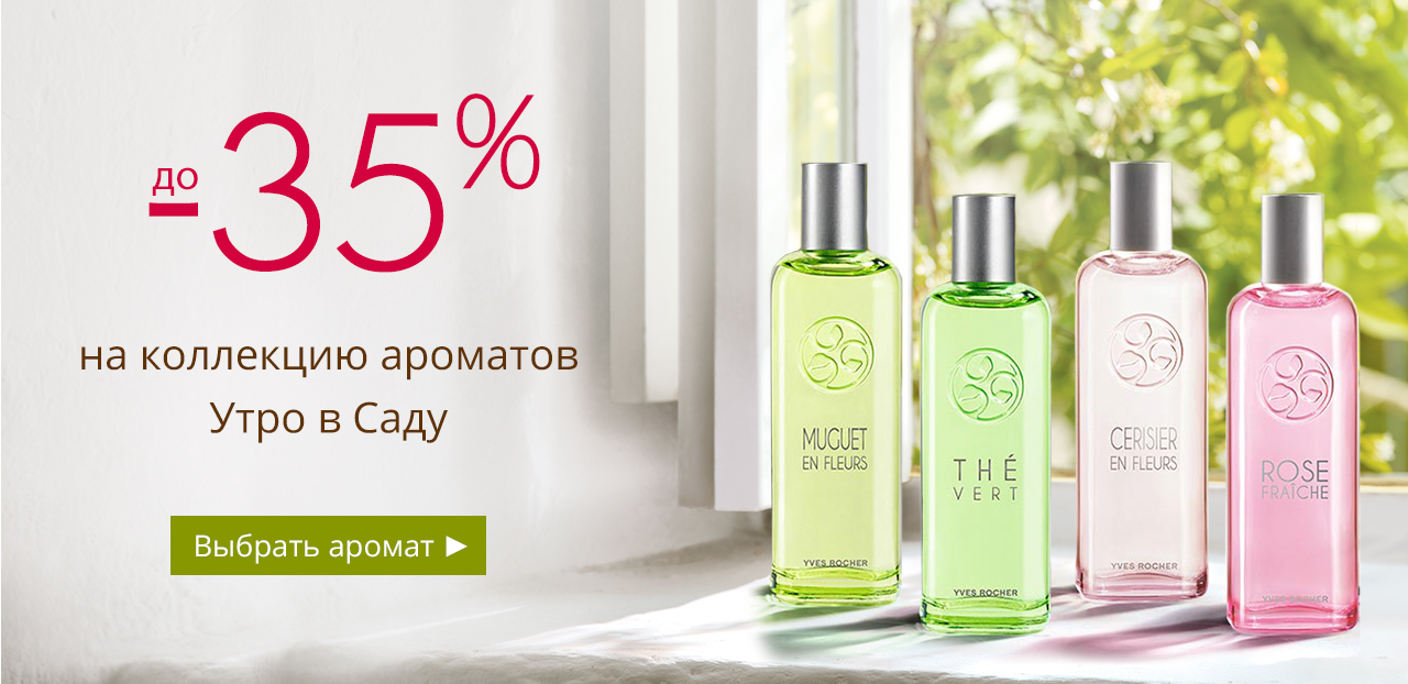 Предложение «-35% на коллекцию "Утро в Саду"» действительно до 21 октября 2018 г. в интернет-бутике Yves Rocher.