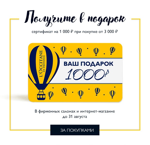 Условия акции: скидка -20% на весь ассортимент бренда L'Occitane в интернет-магазине.Действие акции: с 24.08.2018 по 26.08.2018