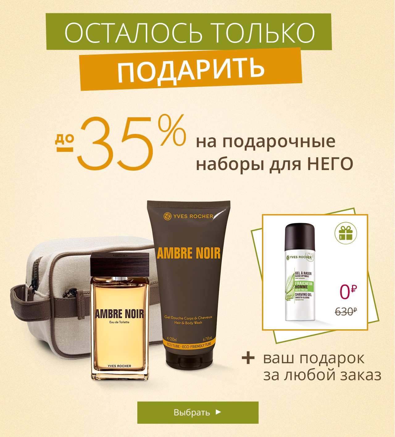 Предложения «Идеи подарков ко дню влюбленных со скидкой до -35%» и «1+1=3» 3 любых продукта по ссылке за 1260 руб. действительны до 14 февраля 2019 г. в интернет-бутике Yves Rocher.Предложение «Гель для бритья» в подарок действительно по промокоду FRESH при любом заказе 11 февраля 2019 г. в интернет-бутике Yves Rocher.