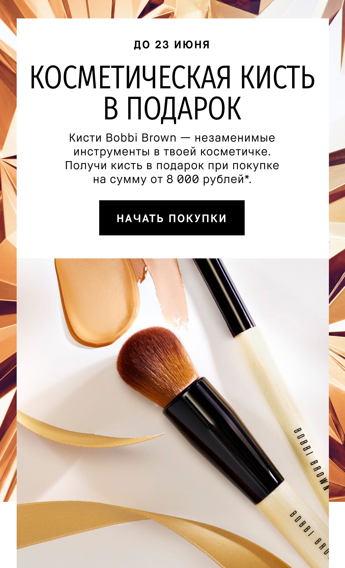 Условия акции: кисть для макияжа в подарок при покукпе на сумму от 8000₽ в интернет-магазине Bobbi Brown. Действие акции: с 20.06.2020 по 23.06.2020
