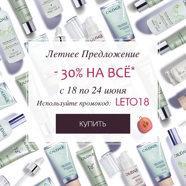 637 0 Условия акции: скидка -30% предоставляется на весь ассортимент товаров в интернет-магазине Caudalie.Промокод: LETO18Действие акции: с 18.06.2018 по 24.06.2018Перейти к покупке! 18.06.2018 Автор статьи: Мария Владимирова Поделиться с друзьями