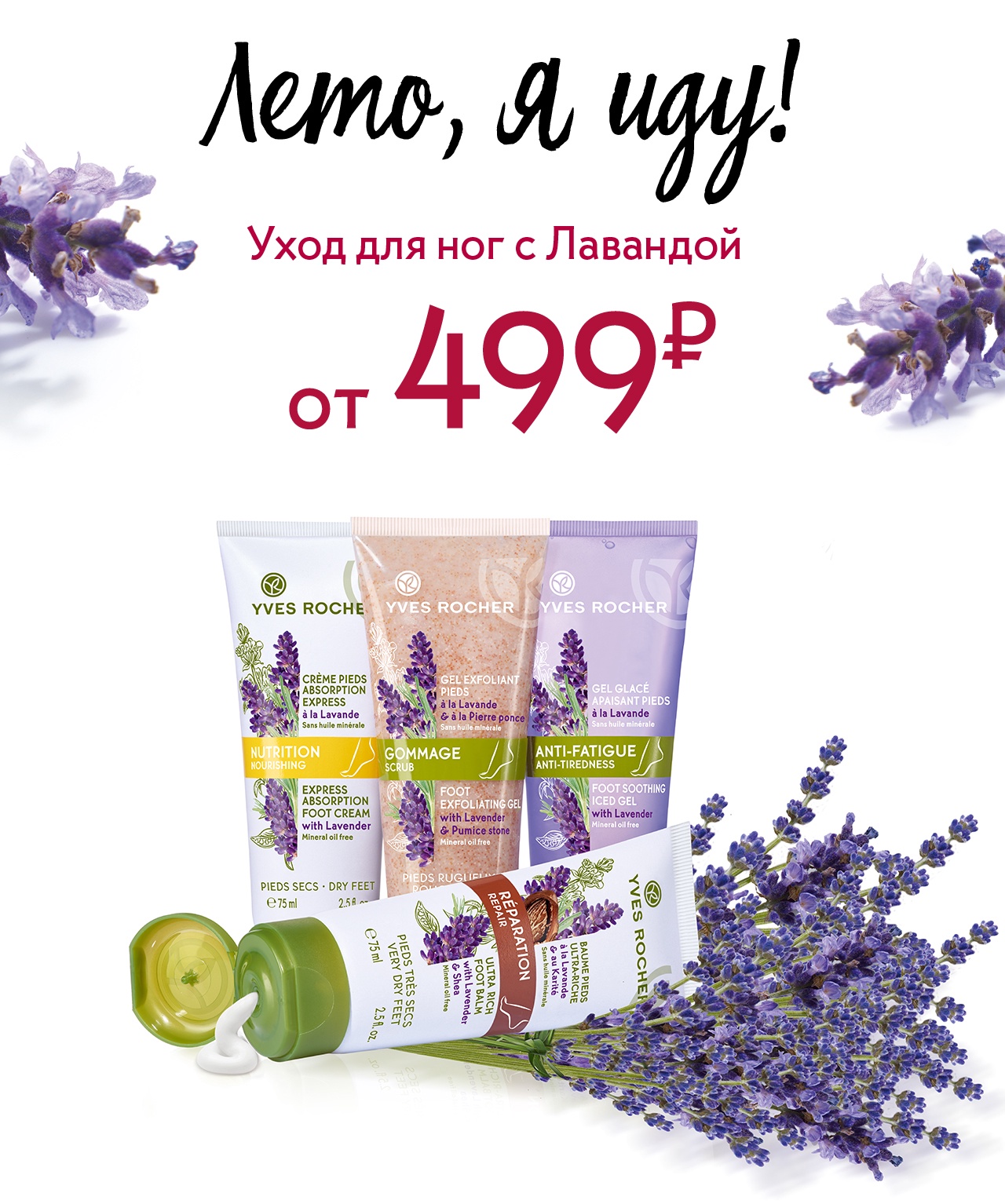 Предложения «Уход для ног от 499 руб.» и «До -30% на лидеров рейтинга» действительны до 2 июня 2019 г. в интернет-бутике Yves Rocher.