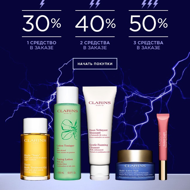Условия акции: при покупке в интернет-магазине Clarins действуют следующие скидки:
