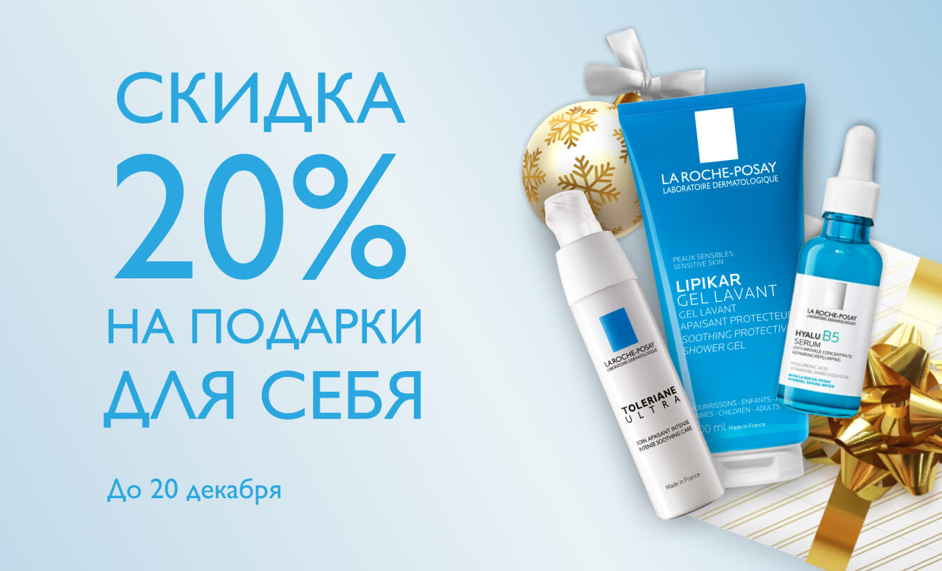 Условия акции: скидка -20% действует на весь ассортимент в интернет-магазине La Roche-Posay.Действие акции: с 19.12.2019 по 20.12.2019