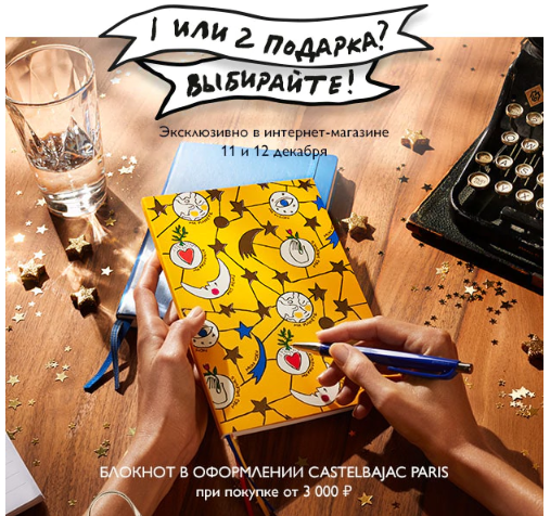 от 3000 рублей- блокнот;от 6000 рублей-сумка для шопинга.