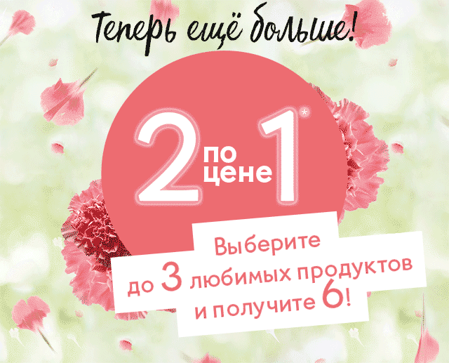 Предложение «2=1: не более 3 продуктов из специальной подборки» действительно до 5 марта 2020 при покупке в интернет-магазине Yves Rocher.