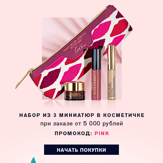Условия акции: подарки в интернет-магазине Estee Lauder при покупке:от 3000 рублей стильная косметика в подарок, промокод: EL3000от 5000 рублей набор из трех миниатюр и косметички в подарок, промокод: PINK или BLUEот 8000 рублей набор кистей в косметичке в подарок, промокод: EL8000Действие акции: с 05.10.2018 до тех пор, пока подарки есть в наличии.