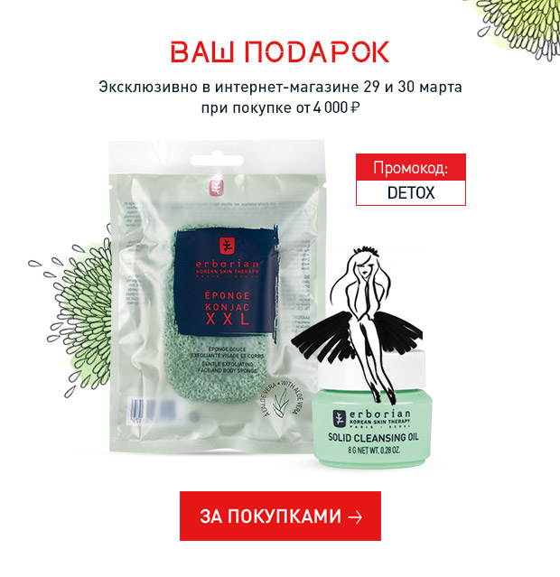 Условия акции: совершая покупку от 4000₽, в подарок вы получаете спонж Конняку XXL и очищающее масло.Промокод: DETOXДействие акции: с 29.03.2018 по 30.03.2018Перейти к покупкам!