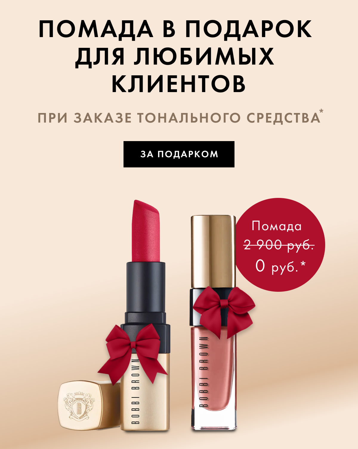 Условия акции: в подарок помада для губ при покупке тонального средства в интернет-магазине Bobbi Brown.Действие акции: с 13.06.2019 до тех пор, пока подарки есть в наличии.
