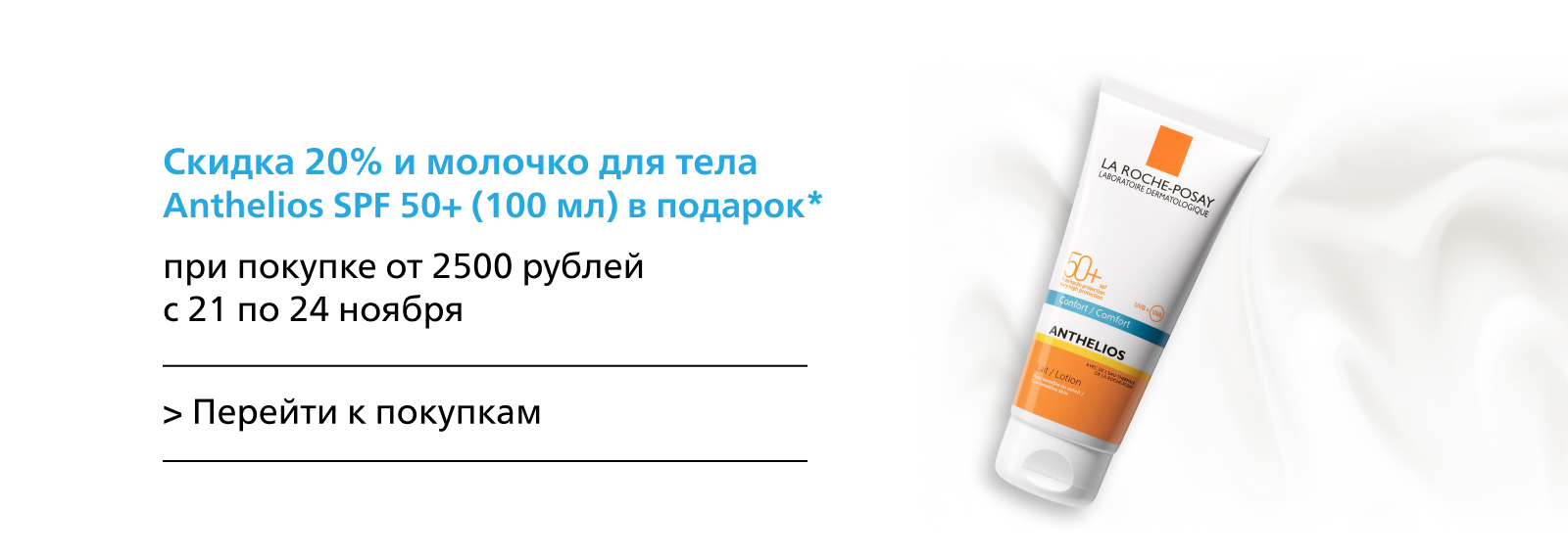 Условия акции: скидка -20% и подарок при покупке от 2500₽ в интернет-магазине La Roche-Posay.Промокод: FRIDAYДействие акции: с 21.11.2019 по 24.11.2019