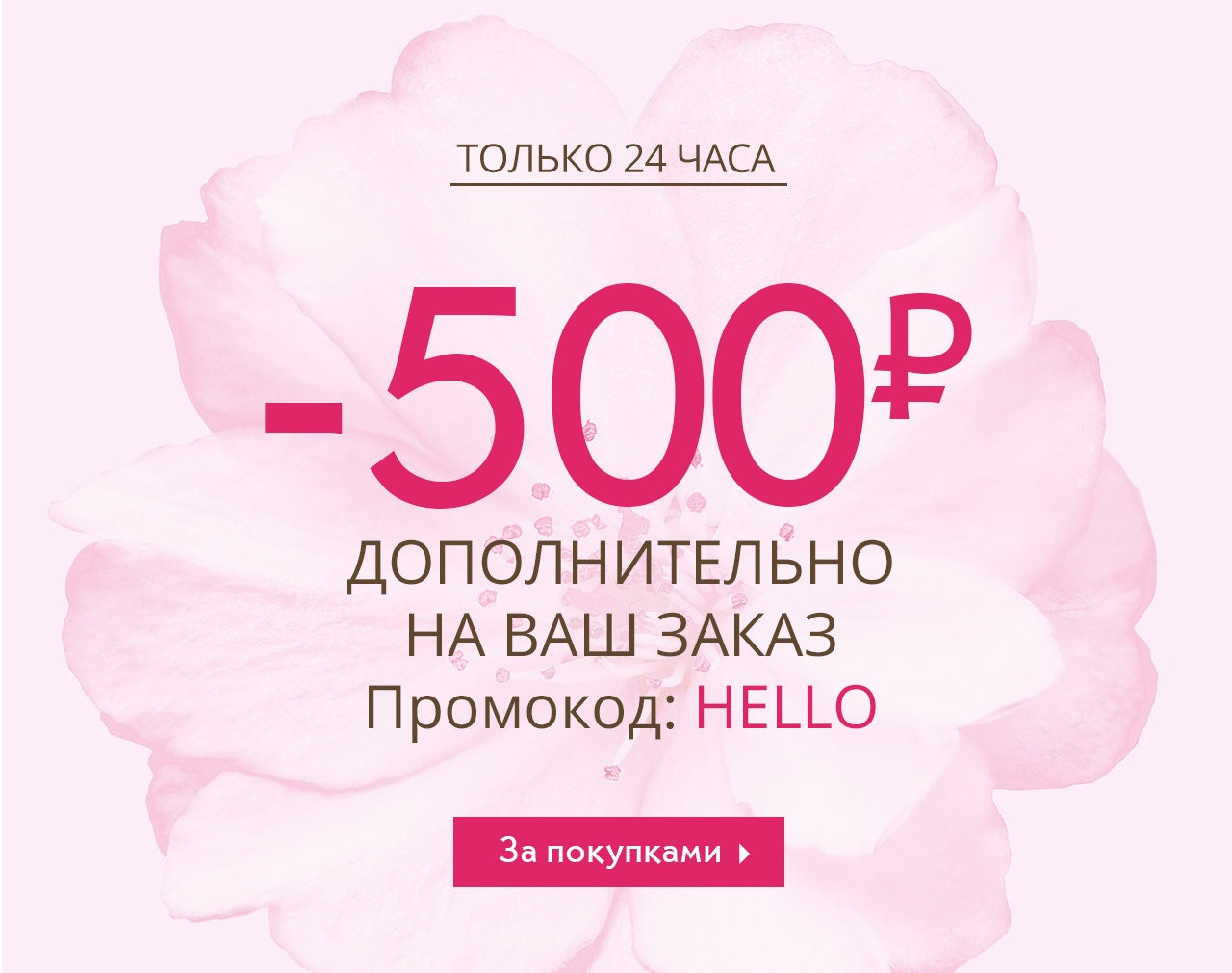 Предложение «-500 дополнительно на заказ по промокоду HELLO» действительно на первый заказ от 1390 до 5 октября 2018 г. в интернет-бутике Yves Rocher.