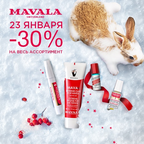 Условия акции: скидка -30% действует на весь ассортимента бренда MAVALA в интернет-магазине Иль де Ботэ, подарки при покупке от 690₽Действие акции: только 23.01.2019 до 23:59 по моск.времени.Подробнее об акции.