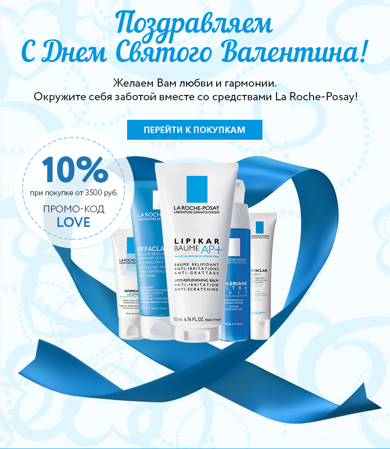 Промо-код LOVE действует с 00:01 12 февраля по 23:59 14 февраля 2018 года и предоставляет скидку -10% в интернет-магазине La Roche-Posay.