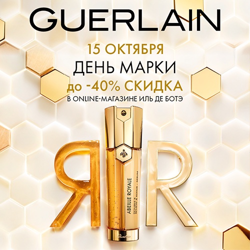 Условия акции: скидка -40% действует на весь ассортимент бренда Guerlain в интернет-магазине Иль де Ботэ, подарки при покупке.Действие акции: только 15.10.2018 до 23:59 по моск.времени.Подробнее об акции.