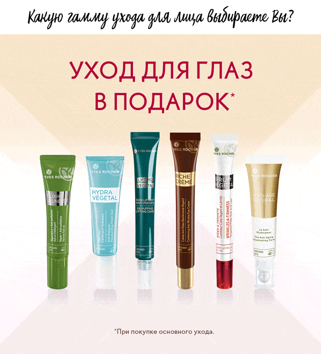 Предложения «Уход для глаз в подарок», «Мультимаскинг: 1+1=3», «Подарки за заказ» действительны до 19 февраля 2020 г., в интернет-магазине Yves Rocher.